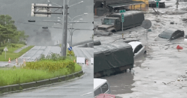 Chỉ trong vài phút, bùn cuồn cuộn đổ về khiến xe cộ trôi nổi, người dân hoảng loạn ôm cột điện kêu cứu giữa dòng nước xiết.
