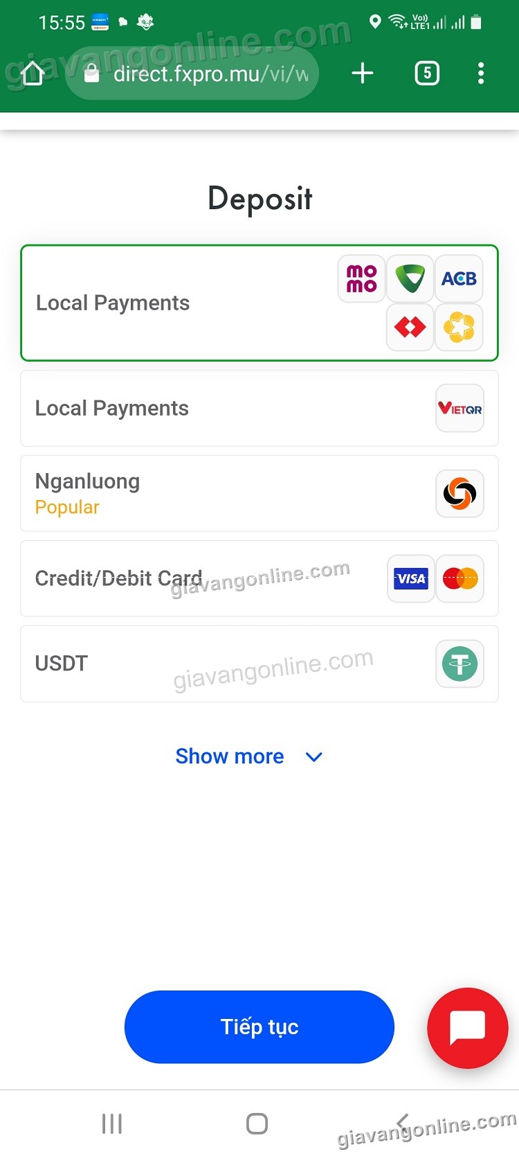 b. Deposit Amount: bạn nạp số tiền tối thiểu là 2,000,000 VND (tối đa là 300tr).