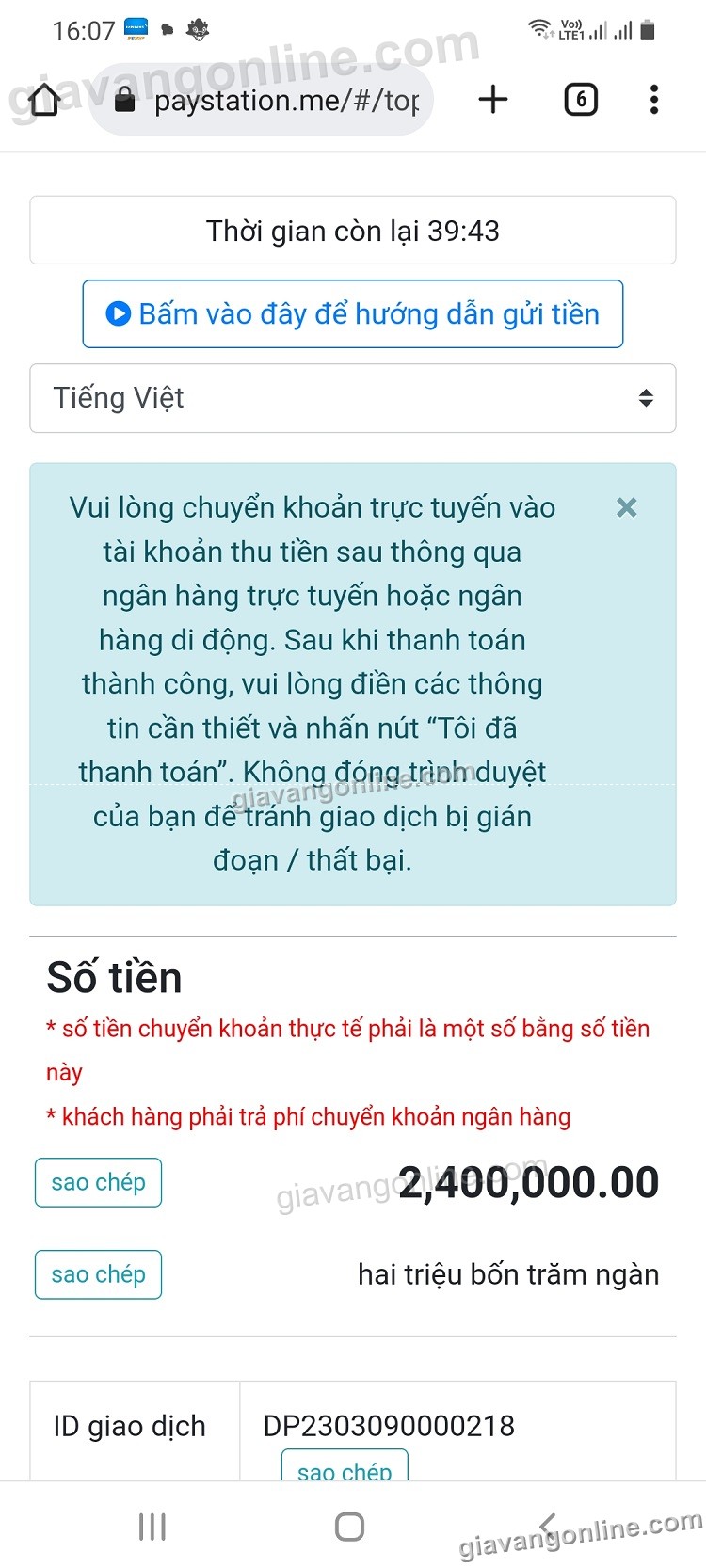 e. Bạn nhớ chụp hình lại biên nhận khi chuyển tiền xong và upload biên nhận để báo cho bên cung cấp dịch vụ biết!