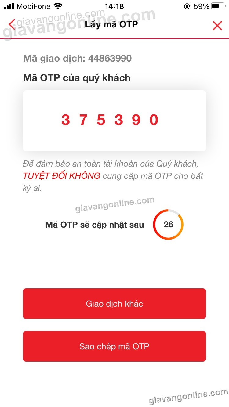 - Lấy mã OTP để chuyển tiền