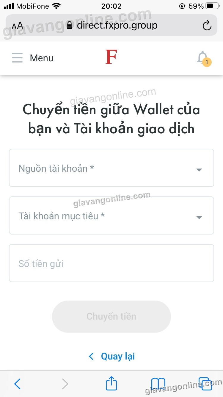 1. Đăng nhập vào https://direct-fxpro.finance để chuyển/ rút tiền