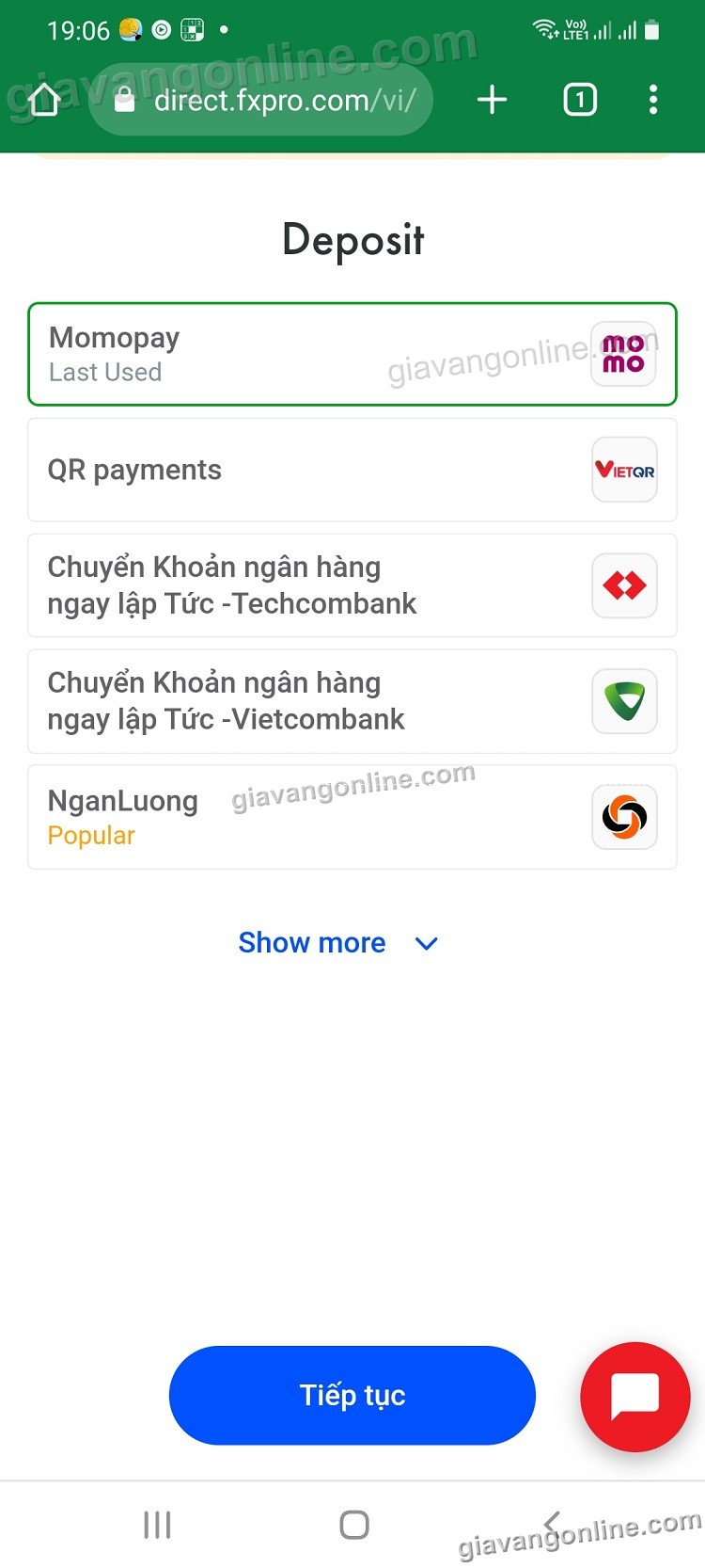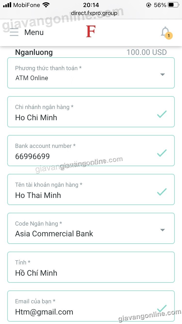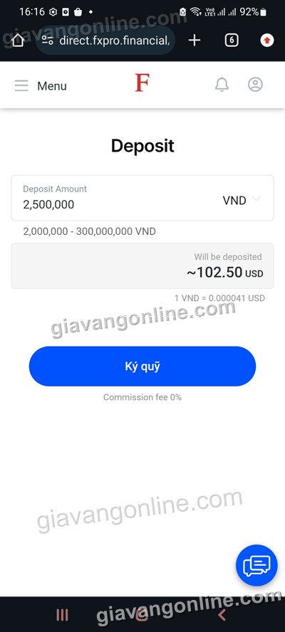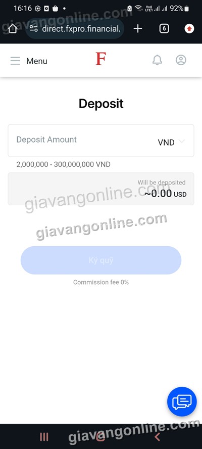 a. Số tiền gửi (Deposit Amount): tối thiểu là 2,000,000 VND. Fxpro sẽ quy đổi ra USD tương đương