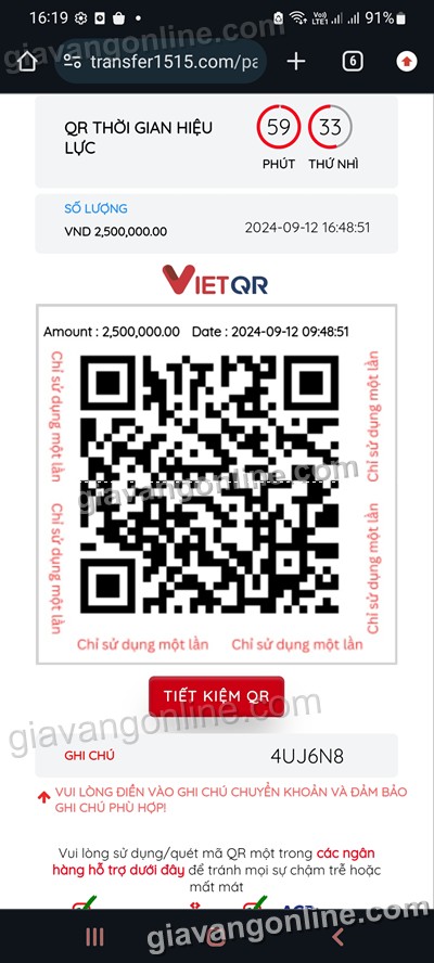 * Bấm ký quỹ, hệ thống tạo ra mã QR mới; lời nhắc nhở là bạn chỉ nên quét mã 1 lần lúc chuyển khoản bằng app điện thoại
