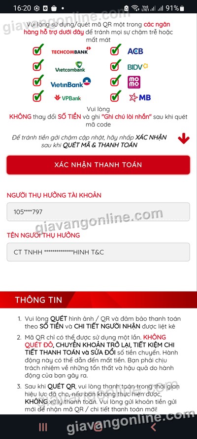 * Khi hoàn tất, bạn bấm vào nút "XÁC NHẬN THANH TOÁN"